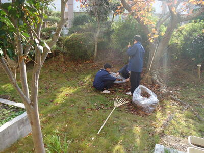 な大きなごみもありました。校内組は、大量の枯れ葉を90Lのごみ袋に10袋以上集め