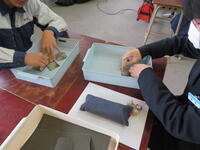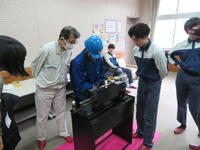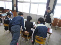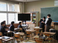 玉野商工高校の先生と生徒の皆さんが、日比中学校の2年生に向けて出前授業をしてくださいました。 教室での授業体験に加え、旋盤(せんばん)やレーザープリント、缶バッジ工作などの実技を体験させていただきました。最初は緊張した様子の2年生でしたが、高校生の皆さんが明るくフレンドリーに接してくれたおかげで、のびのびと活動を楽しむことができました。 また、日比中の卒業生3名も来てくれ、その立派な成長ぶりには驚かされるばかりでした。貴重な体験をさせてくださった玉野商工高校のみなさん、本当にありがとうございました。