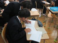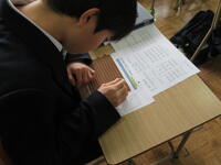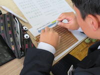 人権週間の取り組みの一環として、全校で点字体験学習(道徳)を行いました。岡山県社会福祉課からお借りした点字盤と点筆を使い、実際に点字で言葉を打ったり、友だちが打った点字を読んだりしました。普段、身のまわりで目にすることのある点字ですが、見えない人や見えにくい人にとっては、さまざまなことを知ったり、伝えたりするためにとても大切な文字です。今回の学習では、点字について学ぶだけでなく、見えない人や見えにくい人のことを考えたり、想像したり、みんなで一緒に生きていく社会について考えるきっかけになったと思います。