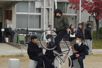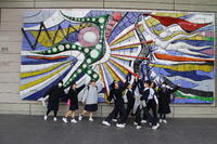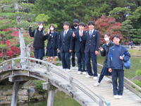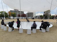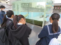 3年に1度開催される「岡山芸術交流2025」。岡山市の公共の場や公園に展示された芸術作品を、班ごとに歩いて巡りました。旧内山下小学校では、案内をしてくださるボランティアの方から説明を聞いたり、グループ内で感じたことを発表・交流したりしながら、現代アートを味わいました。ユニークな作品が多く、中には首をかしげる生徒もいましたが、芸術に触れる一日を存分に楽しむことができました。