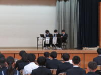 新執行部のみなさん、新スローガン「JUST DO IT ~さあ、やってみよう!」の提案ありがとうございました。みなさんの思いを全校生徒で確認することができたと思います。一人一人がいろいろなことに積極的にチャレンジしていく日比中をみんなで作り上げていきましょう。