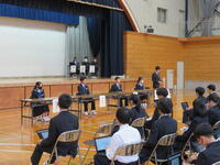 前期の生徒会活動を振り返り、後期の方針、目標を確認しました。旧執行部のみなさん、「一視同仁~すべての人を平等に~」のスローガンのもと全校生徒の先頭になって、その背中で日比中を引っ張ってくれました。1年間ありがとうございました。