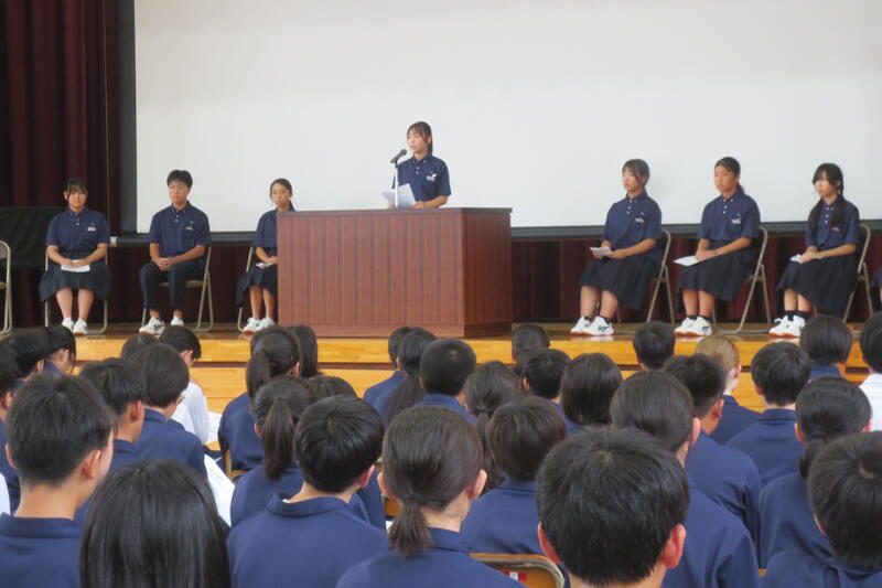 3年生を中心とした前期の生徒会役員との交代の時期になり、本日、9月25日(木)に生徒会役員選挙が行われました。立候補者は全校生徒を前に緊張した面持ちではありましたが、ステージ上で自分の考えを堂々と述べていました。