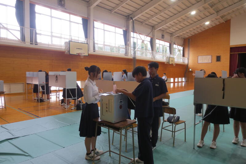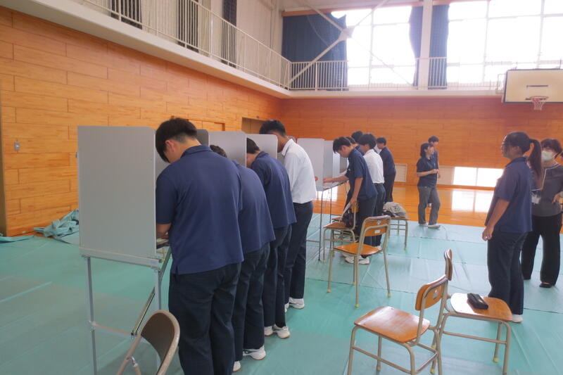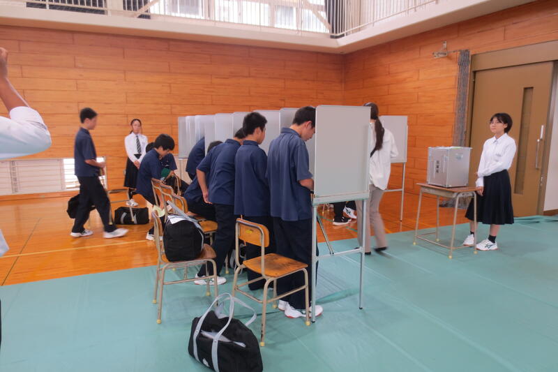 選挙管理委員会が中心となり、公平で厳粛な投票を呼び掛けていました。投票箱の設置や会場の準備・片付けなども生徒たちが中心となり行っていました。自分たちでこのような厳粛な雰囲気を創り上げることができたのはすばらしいことだと思います。