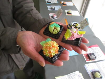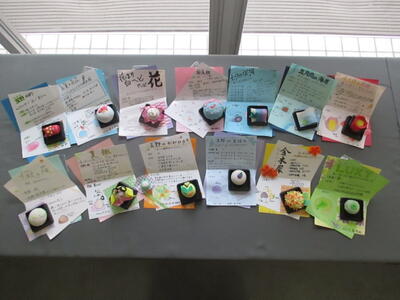 美術の時間に、生徒たちが季節感と遊び心のあるオリジナル和菓子を考え、その作品を一つ一つ手に取って審査してくれました。