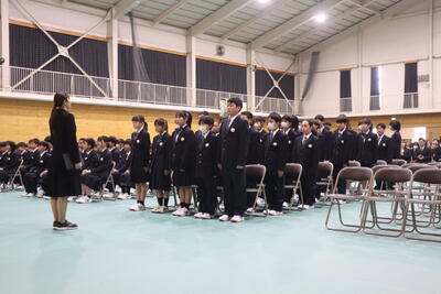 本日、1月7日(水)に三学期始業式が行われました。生徒たちはきちんと服装を整え、話を聞く態度も立派でした。