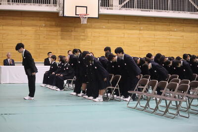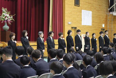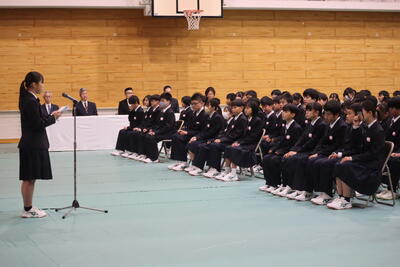 修了式の様子です。生徒たちは落ち着いた雰囲気で、顔をあげてしっかり話を聞いています。