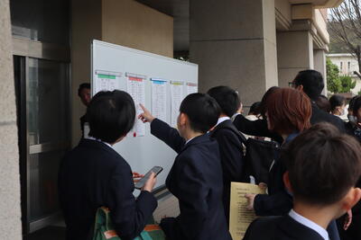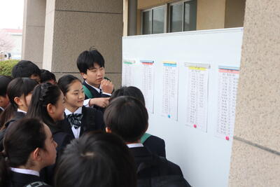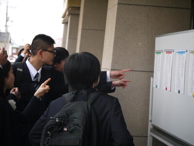入学式当日の様子です。自分が何組なのか、ドキドキ、ワクワクが伝わってきます!