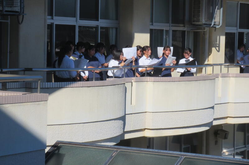 パート練習をするのにベランダを使って練習しているクラスがありました。
