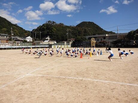 小中一貫教育の取組として、玉中学校の先生に体育の授業をしてもらいました。10月にある校内陸上記録会で記録を伸ばすために、専門的な見地から、体の使い方や技術を教えていただきました。